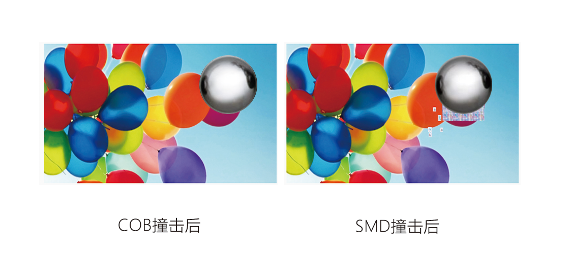 COB工藝相對于SMD的工藝的LED屏,防護性能級別更高??煞浪?、防磕碰、防潮、防撞擊、防氧化、防鹽霧防靜電、易清洗等優點,大大減少了產品在運輸、安裝和使用過程中因碰撞產生的死燈、接觸不良等問題。
